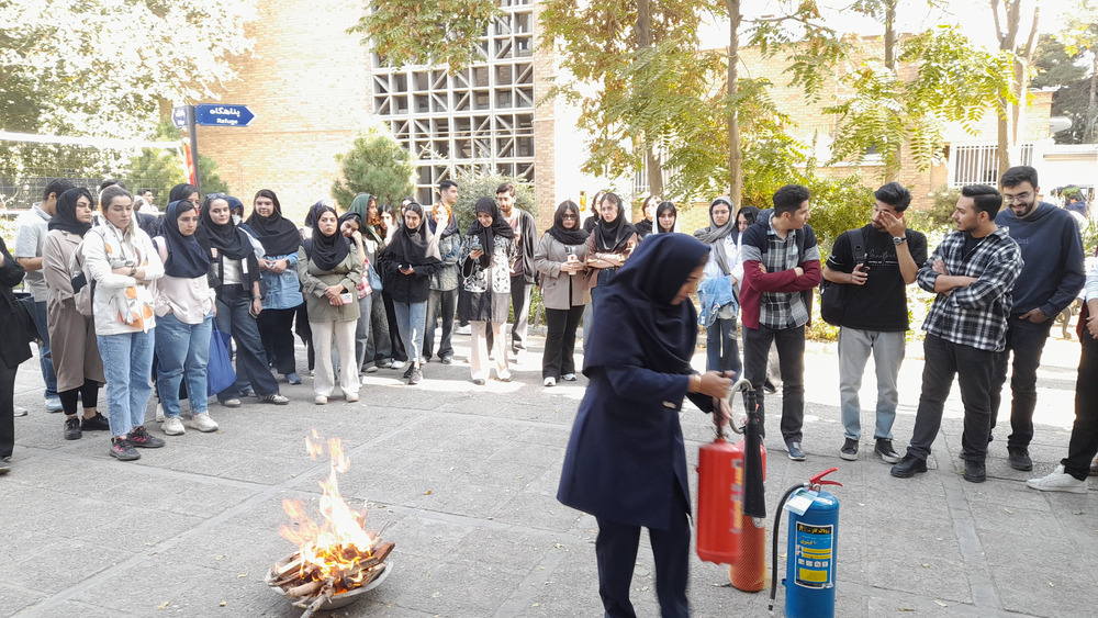 در بخش تئوری این کارگاه، شرکت‌کنندگان با مفاهیم پایه‌ای ایمنی در برابر آتش، انواع حریق، طبقه‌بندی مواد قابل اشتعال، روش‌های اصولی پیشگیری از آتش‌سوزی و نحوه برخورد صحیح در شرایط اضطراری آشنا شدند. خانم فارسی در این بخش با ارائه توضیحات علمی و ذکر نمونه‌های واقعی، اهمیت واکنش سریع و آگاهانه را در مواقع بحرانی برای دانشجویان تبیین کردند.