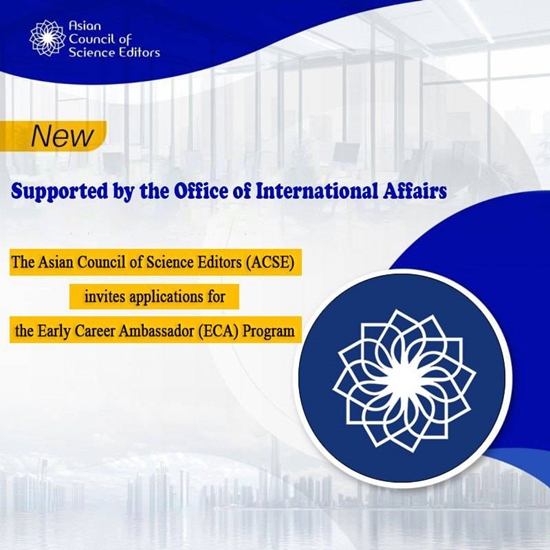 انجمن آسیایی ویراستاران علمی (ACSE) در راستای توانمندسازی نسل جدید پژوهشگران و متخصصان نشر علمی، برنامه سفیران حرفه‌ای جوان (ECA) را راه‌اندازی می‌نماید.