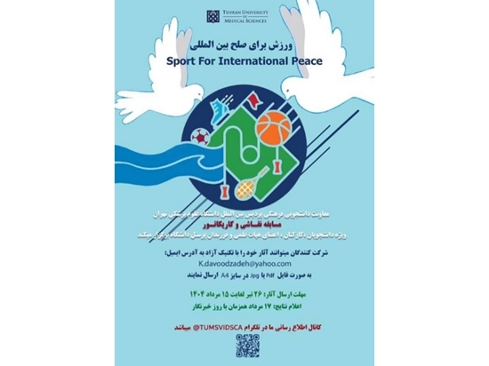 معاونت دانشجویی فرهنگی پردیس بینالملل دانشگاه علوم پزشکی تهران مسابقهای با موضوع ورزش برای صلح بینالمللی ویژه دانشجویان، اعضای هیأت علمی، کارکنان و فرزندان پرسنل دانشگاه برگزار میکند.