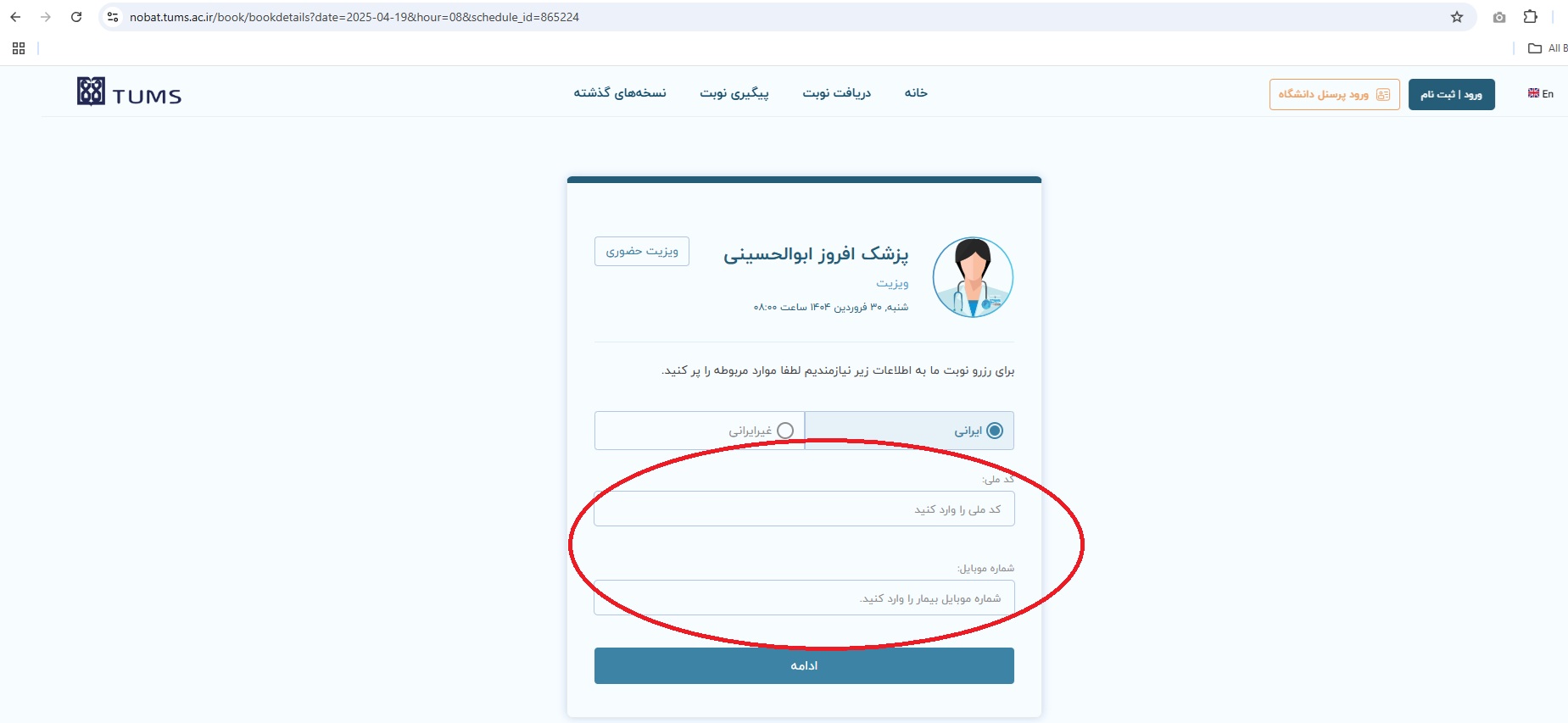 معاونت بین الملل | راهنمای دریافت نوبت اینترنتی معاینه