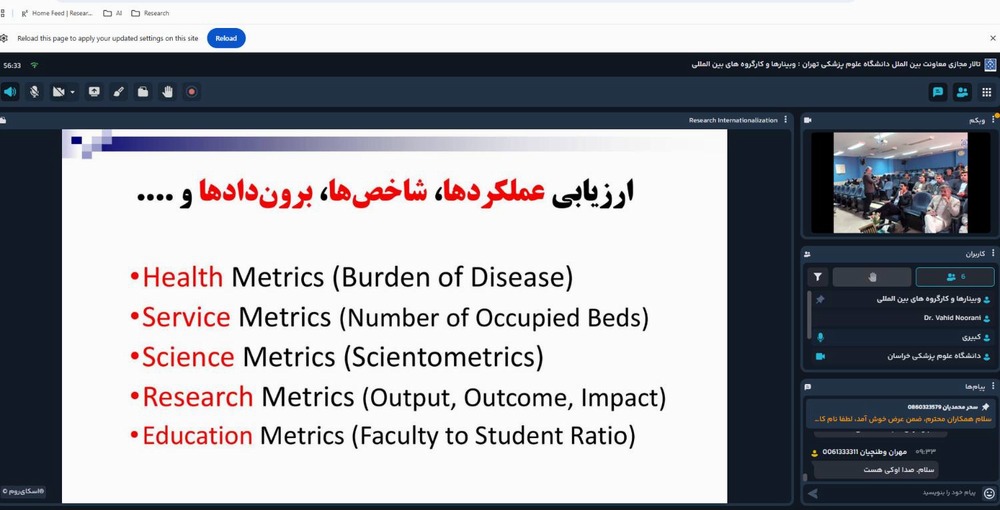 برگزاری کارگاه آنلاین بین الملی سازی آموزش عالی در علوم پزشکی ویژه دانشگاه علوم پزشکی خراسان شمالی