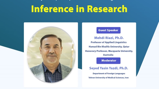 به گزارش روابط عمومی کالج بین‌الملل دانشگاه علوم پزشکی تهران، روز شنبه ۱۹ مهرماه ۱۴۰۴ وبینار بین‌المللی با موضوع «Inference in Research» توسط گروه زبان‌های خارجی کالج بین‌الملل با سخنرانی دکتر Mehdi Riazi، استاد برجسته زبان‌شناسی کاربردی از دانشگاه Hamad Bin Khalifa قطر و استاد افتخاری دانشگاه Macquarie استرالیا به‌صورت مجازی در بستر اسکای‌روم برگزار خواهد شد. این وبینار با هدف ارتقای دانش زبان‌شناسی کاربردی و بررسی رویکردهای نوین در تحقیقات علمی برنامه‌ریزی شده است.