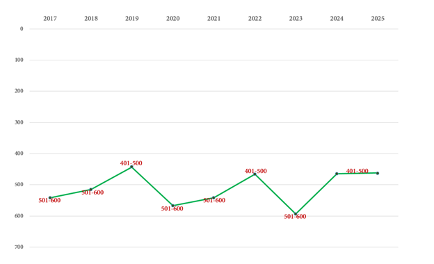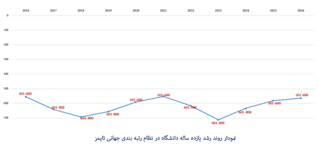 روند رشد جایگاه دانشگاه در نظام رتبه بندی Times Higher Education (THE)