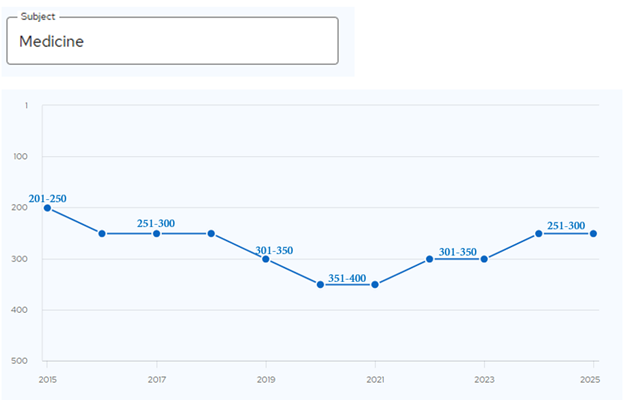 روند رشد جایگاه دانشگاه در نظام رتبه بندی QS (حوزه پزشکی)