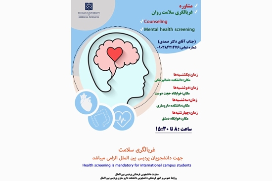 با توجه به اهمیت موضوع، حضور تمامی دانشجویان پردیس بینالملل در این غربالگری الزامی است و شرکت در جلسات مشاوره و ارزیابی به عنوان بخشی از الزامات سلامت دانشجویی تلقی میگردد.
